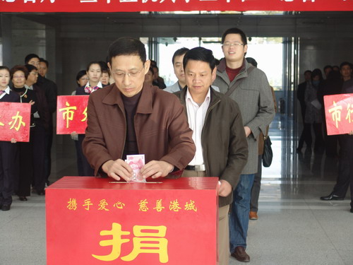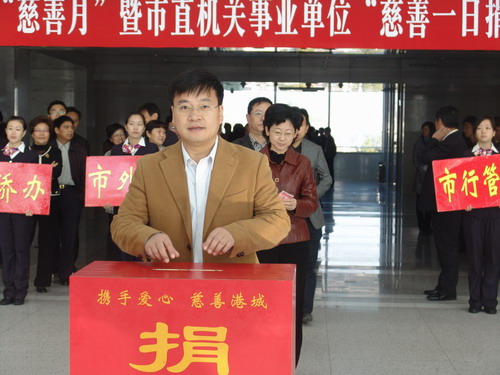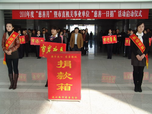 10月29日上午,2010年度“慈善月”暨市直级机关事业单位“慈善一日捐”活动启动仪式在市行政中心举行。我委全体领导班子和干部职工在朱国兵主任的带领下,积极参加捐款,现场募捐现金1万余元。